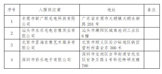 三、入圍供應商及主要標的信息