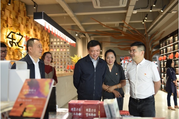 省委常委、省委宣傳部部長張宏森調(diào)研長沙市新華書店樂之書店·天心店。